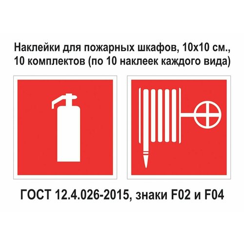Наклейки для пожарных шкафов, F02 и F04, пленка ПВХ 10х10 см, 10 комплектов