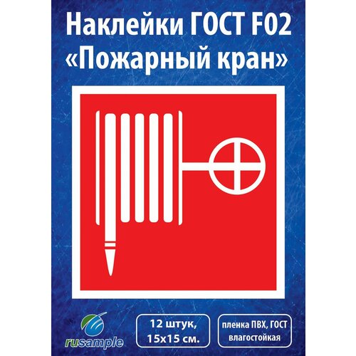Наклейки F02 "Пожарный кран", ГОСТ 15х15 см, 12 штук