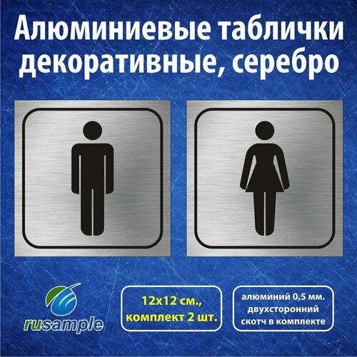 Алюминиевые таблички для туалета "Мужской/Женский" 12х12 см, 2 шт.
