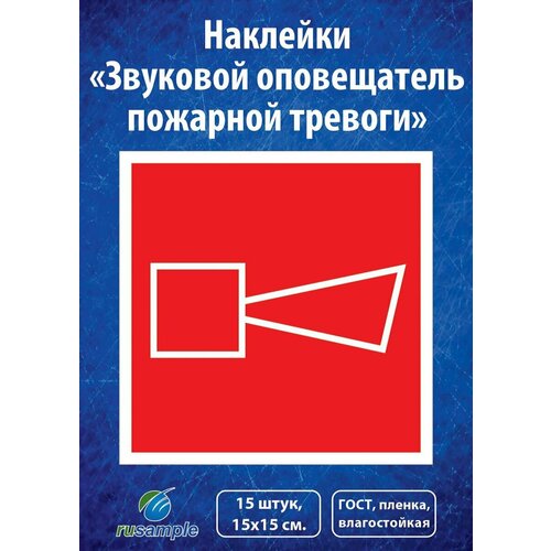 Налкейка-знак "Звуковой оповещатель пожарной тревоги", ГОСТ F11, 15х15 см, 15 шт.