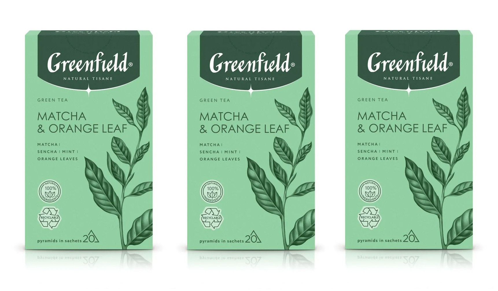 Чай зеленый GreenfieldTisane Matcha & Orange Leaf, 20 пирамидок по 1,8 г, 3 упаковки