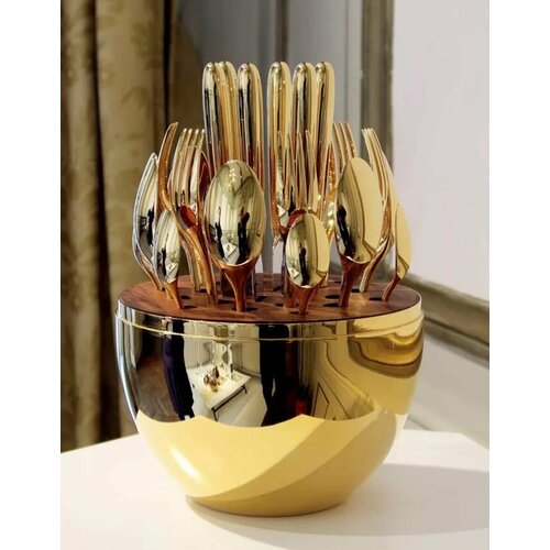 Набор столовых приборов в форме яйца 24 предмета на 6 персон золотой