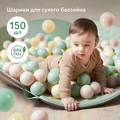 51006, Шарики для сухого бассейна 150 шт, шарики для манежа Happy Baby BURBULLE, olive, creamy, powder