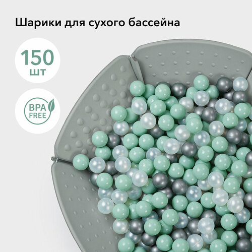 Шарики для сухих бассейнов Happy Baby Burbulle (51006) silver, olive, pearl 150 шт. 7 см