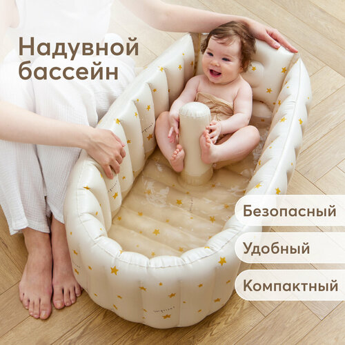 121022, Детский надувной бассейн Happy Baby, надувной бассейн для малышей, на дачу, 50 литров, диаметр 60 см, молочный