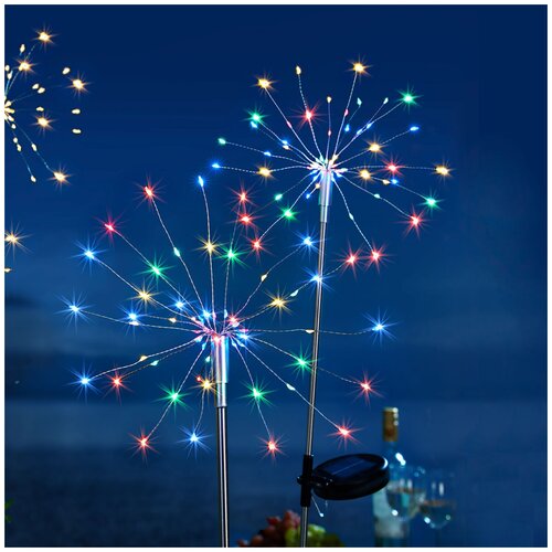 Декоративный штекер садовый с солнечными светильниками "Дождь из бриллиантов", разноцветный, 1 штука