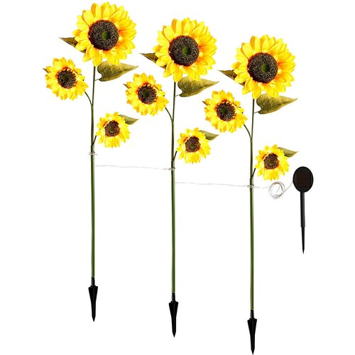 Декоративные штекеры с подсветкой "Подсолнухи - солар", 3 штуки