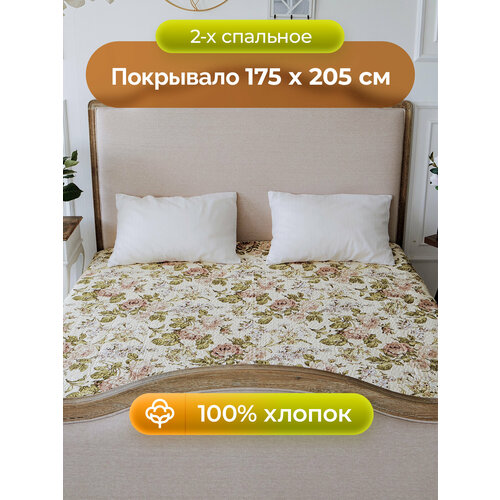 Покрывало хлопковое 2-спальное стеганое на кровать Печворк прохоровская роза (175*205)