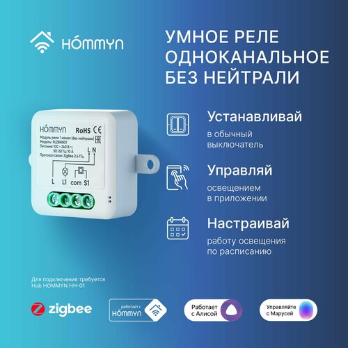 Модуль реле HOMMYN zigbee 1 канал (без нейтрали) RLZBNN01