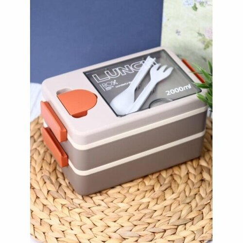 Ланчбокс ILIKEGIFT "Food time", orange-grey (ложка+вилка)