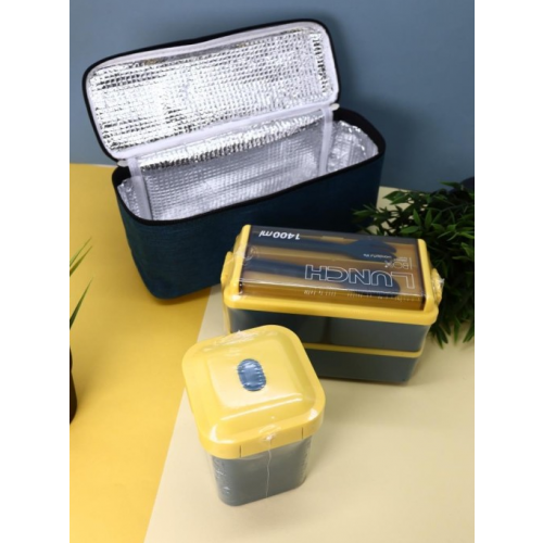 Ланчбокс ILIKEGIFT "Big lunch", blue (ложка+вилка+сумочка)