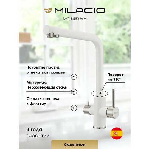 Смеситель для кухни под фильтр с краном для питьевой воды Milacio Ultra ( MCU.553.WH)