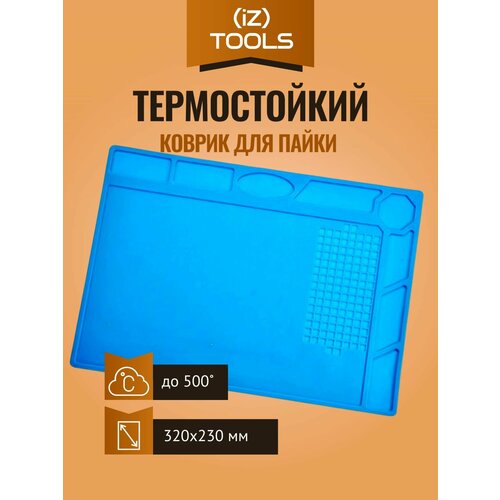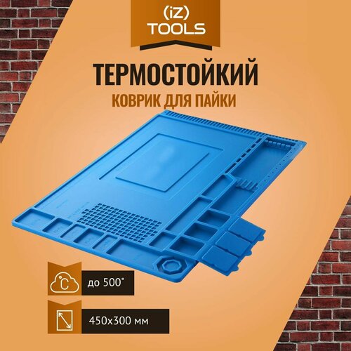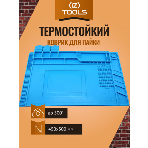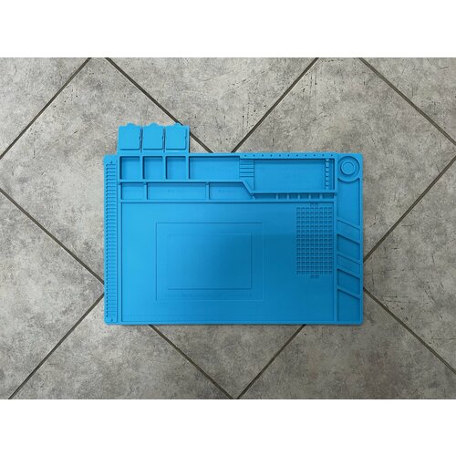 Коврик силиконовый термостойкий 450 х 300 х 5 мм для ремонта и пайки электронных компонентов, 180 секций, кармашки и магнитные площадки, цвет синий