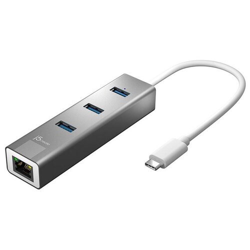 Хаб j5create USB-C на 3 USB Type-A 3.0 и Ethernet порт цвет серый