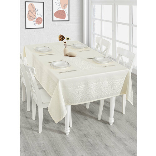 Скатерть жаккардовая прямоугольная Darvin Karna (кремовый), Скатерть 160x220