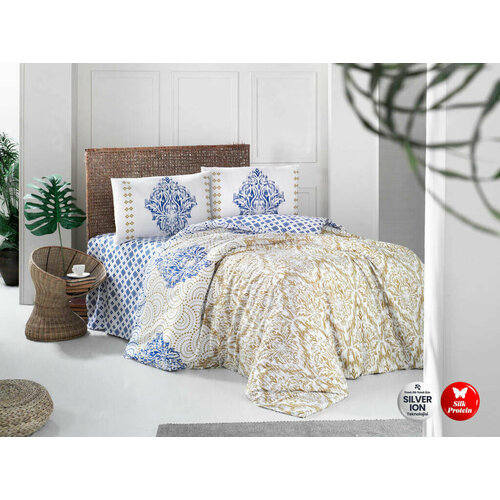 Комплект из ранфорса Favor On Altinbasak (синий), Евро (наволочки 50x70)