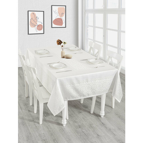 Скатерть жаккардовая прямоугольная Darvin Karna (белый), Скатерть 160x220