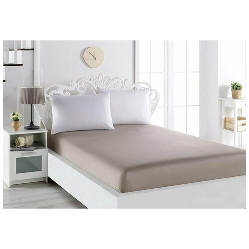 Простыня на резинке из сатина KARNA LOFT капучино 160х200х30