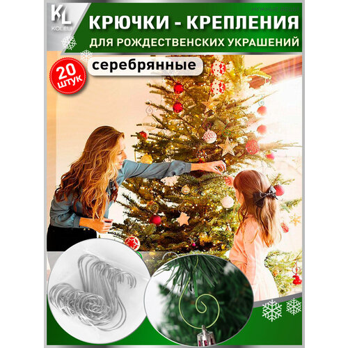 KoLeli / Крючки "Завиток" для елочных игрушек, серебристые крепления для новогодних шаров, 20 шт.
