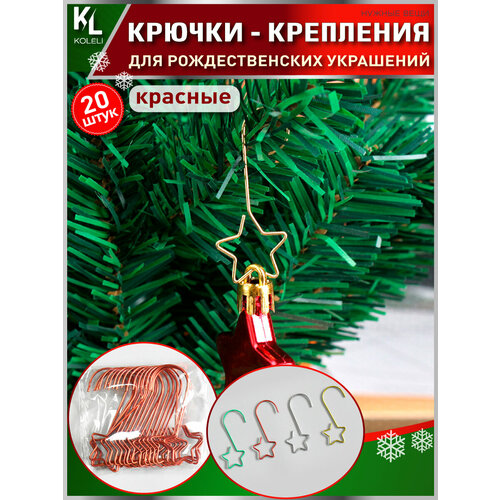 KoLeli / Крючки "Звездочки" для елочных игрушек, красные крепления для новогодних шаров, 20 шт.