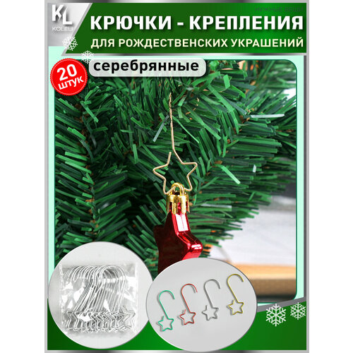 KoLeli / Крючки "Звездочки" для елочных игрушек, серебряные крепления для новогодних шаров, 20 шт.
