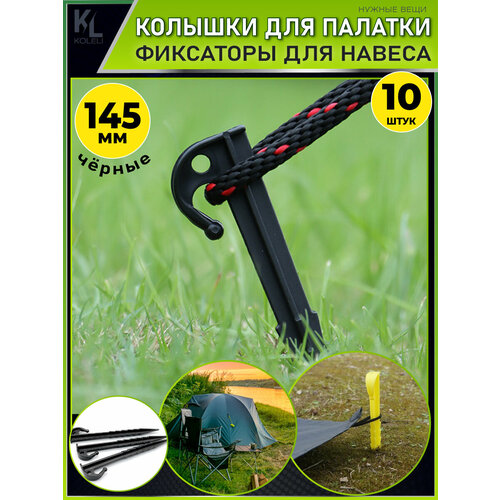 KoLeli / Колышки фиксаторы для палатки и тента, с крючком, 10 шт, черные