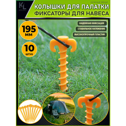 KoLeli / Колышки фиксаторы для палатки и тента, ввинчивающиеся, 10 шт, оранжевые