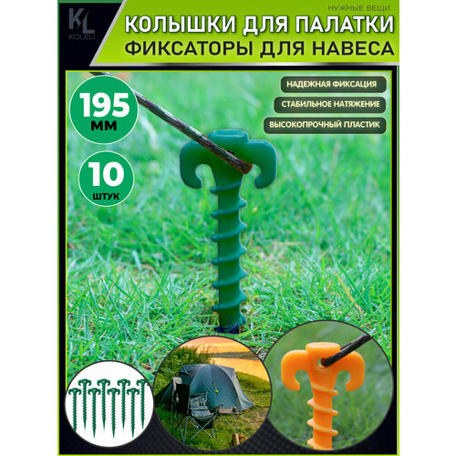KoLeli / Колышки фиксаторы для палатки и тента, ввинчивающиеся, 10 шт, зеленые