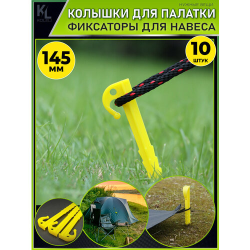 KoLeli / Колышки фиксаторы для палатки и тента, с крючком, 10 шт, желтые