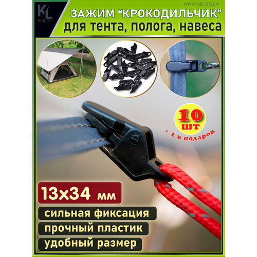 KoLeli / Зажим-прищепка "крокодильчик" / Комплект зажимов для брезента, для установки палатки, тента, 10 шт.