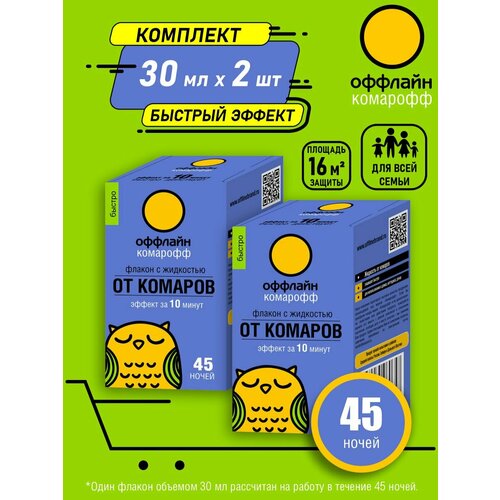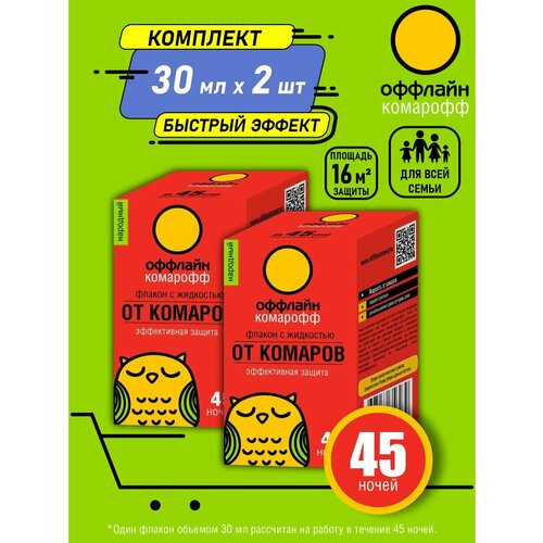 Комплект Жидкость от комаров Быстро Комарофф оффлайн 45 ночей 30 мл. без запаха х 2 шт.
