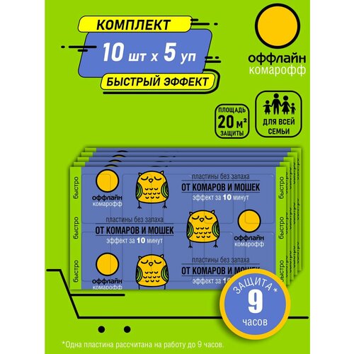 Комплект Пластины от комаров поперечные Быстро Комарофф оффлайн 10 шт. блистер х 5 уп.
