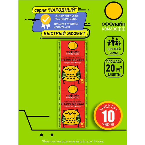 Пластины от комаров и мошек "Оффлайн Комарофф", без запаха,10 шт