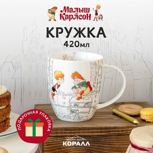 Кружка большая белая фарфор 420 мл. в подарочной упаковке" Малыш и Карлсон. Давай пошалим".