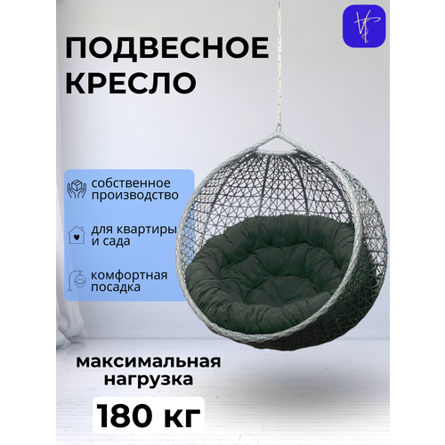 Подвесное кресло кокон, 110*78*100, снежка, серый, зеленая подушка