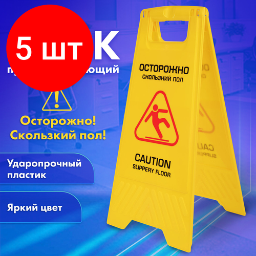 Комплект 5 шт, Знак предупреждающий "Осторожно! Скользкий пол!" пластиковый, 62х30 см, LAIMA PROFESSIONAL, 608006