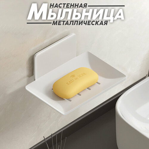 Металлическая мыльница для ванной настенная без сверления белая