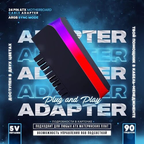 Угловой переходник питания материнской платы 24 Pin с ARGB подсветкой / Адаптер кабеля питания
