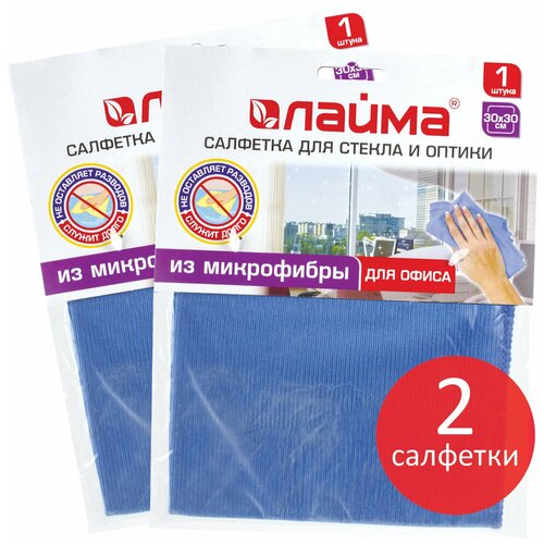 Салфетка для стекла и оптики, Комплект 2 штуки, микрофибра, 30х30 см, Laima, 880079