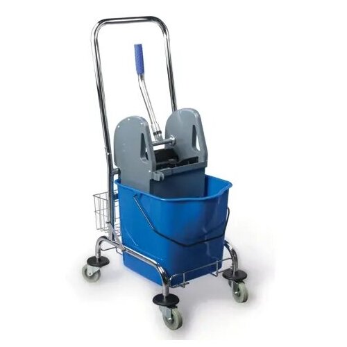 Тележка уборочная BRABIX, 1 съемное ведро 25 л, механический отжим, корзина, металлический каркас, синяя, 601498