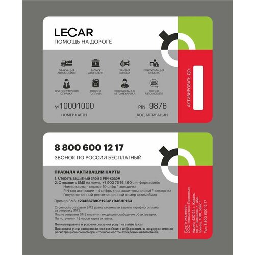 LECAR LECAR000024106 Карта «LECAR Помощь на дороге» Номинал 2 доступны 3 услуги