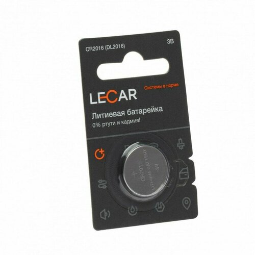 Литиевая дисковая батарейка LECAR CR2016 блистер 1шт