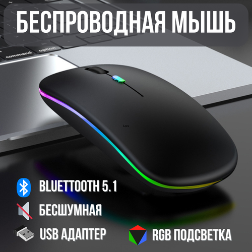 Беспроводная компьютерная мышь "Luna" с аккумулятором и RGB подсветкой черная матовая