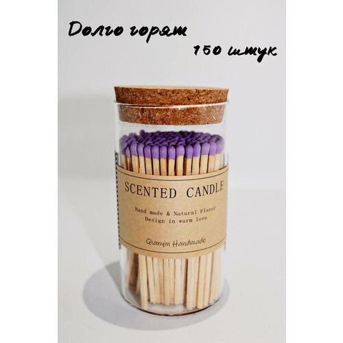 Спички интерьерные в стеклянной баночке для свечей, каминные длинные LUNA 150 штук Сиреневые
