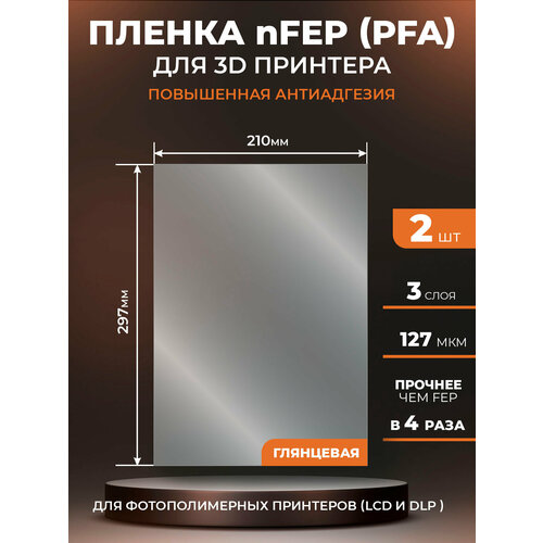 NFEP пленка LuxCase для 3D принтера, прозрачная ФЕП пленка для 3Д принтера (PFA), 127 мкм, 297х210мм, 2 шт.
