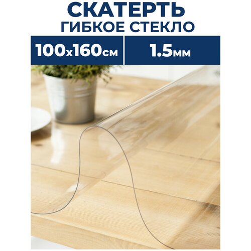 Силиконовая прозрачная прямоугольная ПВХ скатерть PROTECT, 100 x 160 см, / толщина 1,5 мм, гибкое жидкое мягкое стекло
