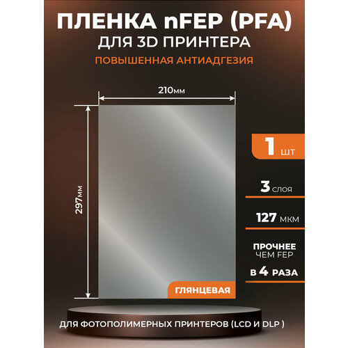 NFEP пленка LuxCase для 3D принтера, прозрачная ФЕП пленка для 3Д принтера (PFA), 127 мкм, 297х210мм, 1 шт.