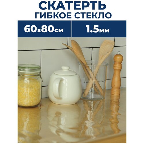 Силиконовая прозрачная прямоугольная ПВХ скатерть PROTECT, 60 x 80 см, / толщина 1,5 мм, гибкое жидкое мягкое стекло