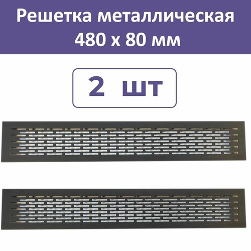 Лот 2 шт: Решетка вентиляционная 480х80 мм, алюминий, черная