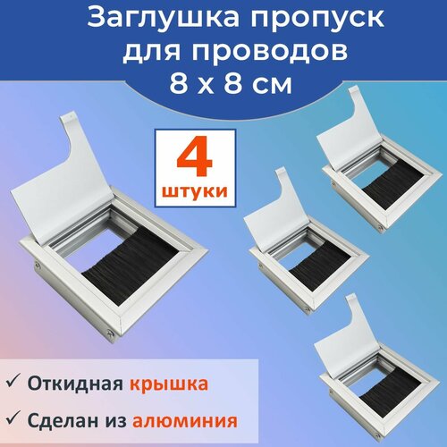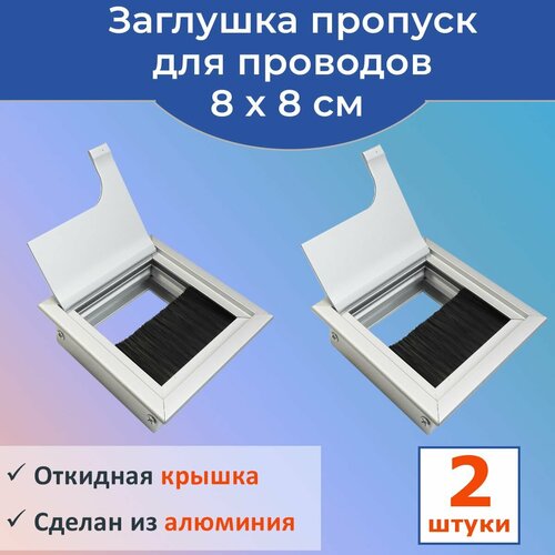 Заглушка пропуск для кабеля, кабель-канал для стола, столешницы, мебели 80х80 мм с щеткой